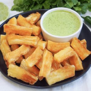 Fried cassava fryes with homemade cilantro sauce